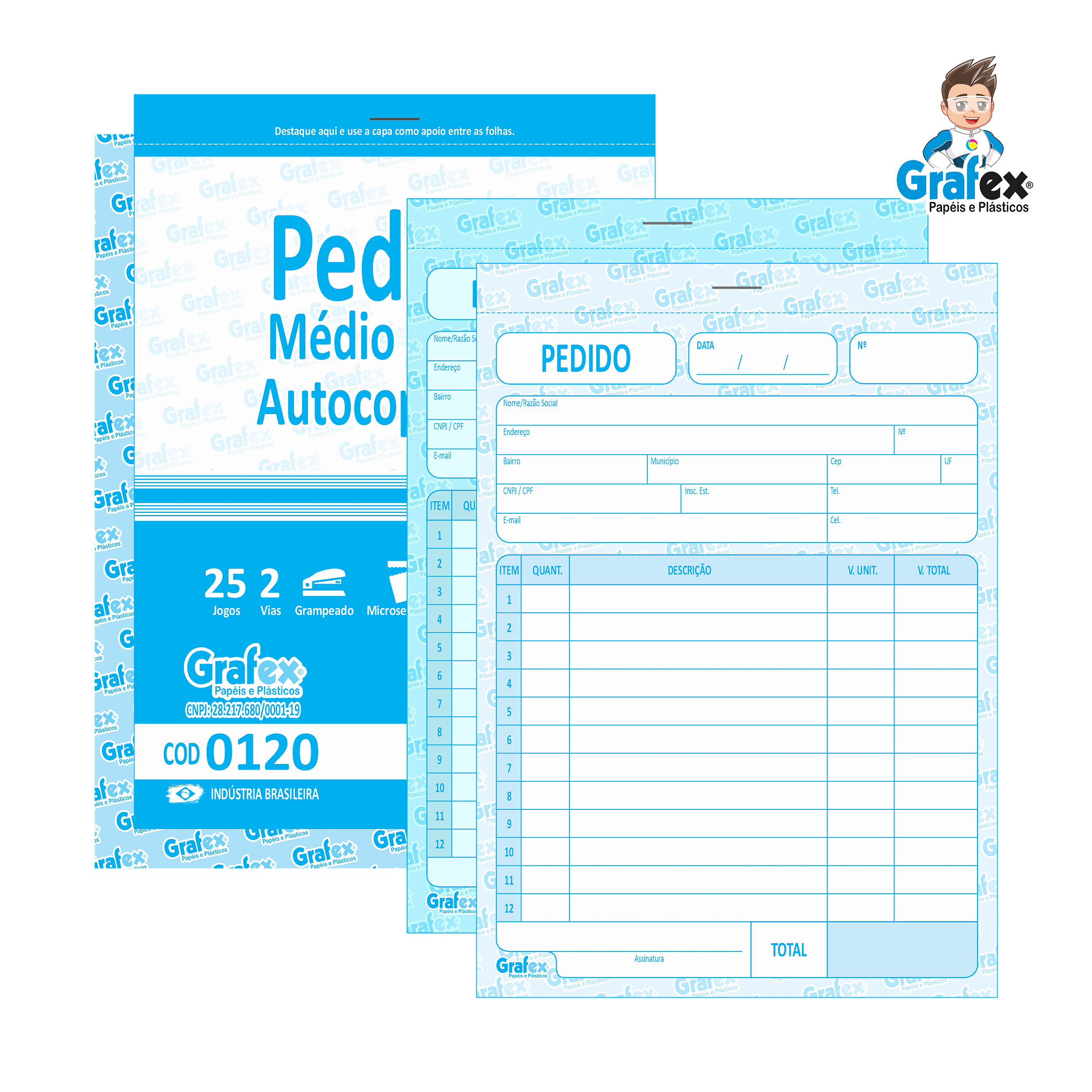 Grafex Cod 0120 Pedido Médio 2 vias Autocopiativo c/25 Jogos 1/36