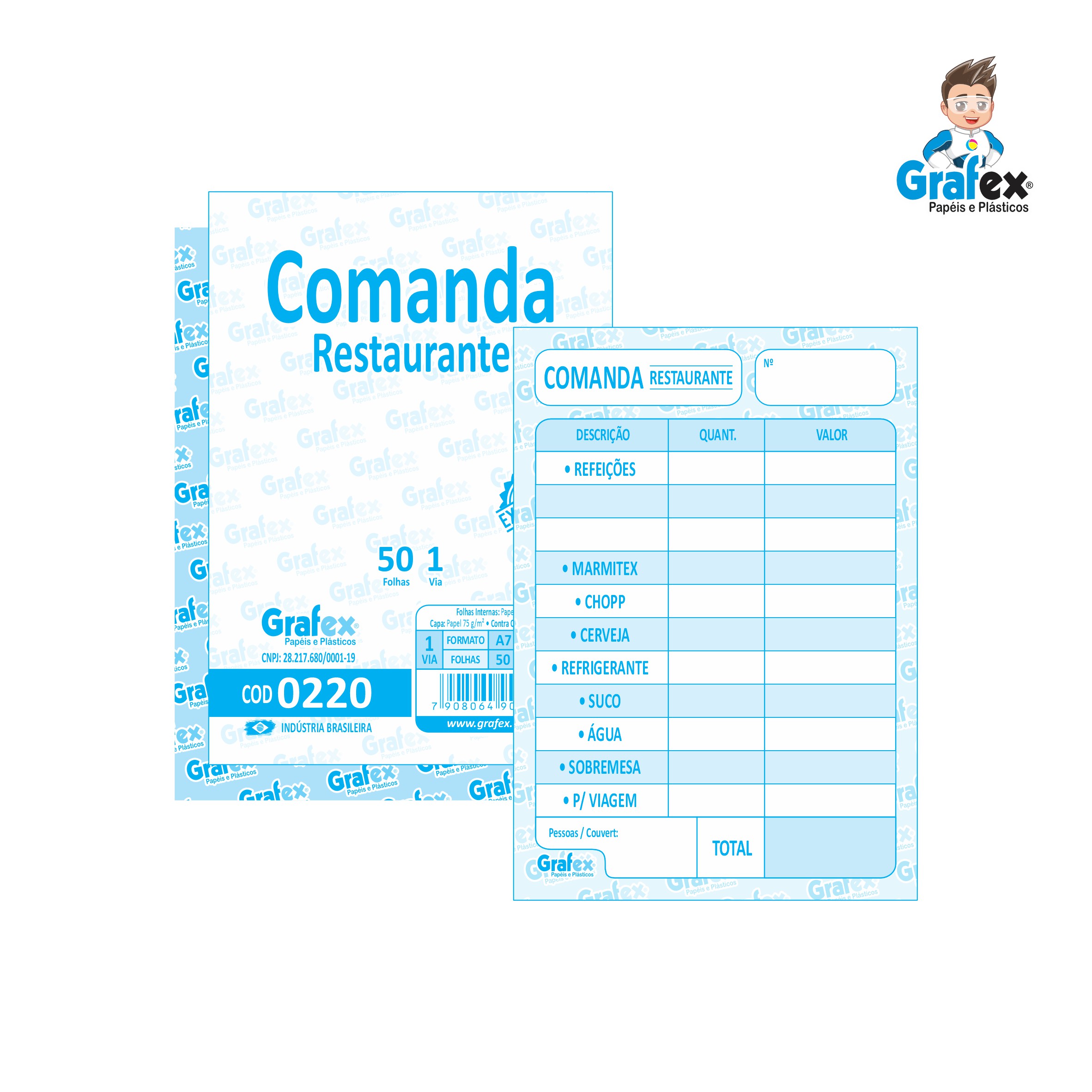 Grafex Cod 0220 Comanda Restaurante c/50 Folhas 1/72 - c/10 Blocos
