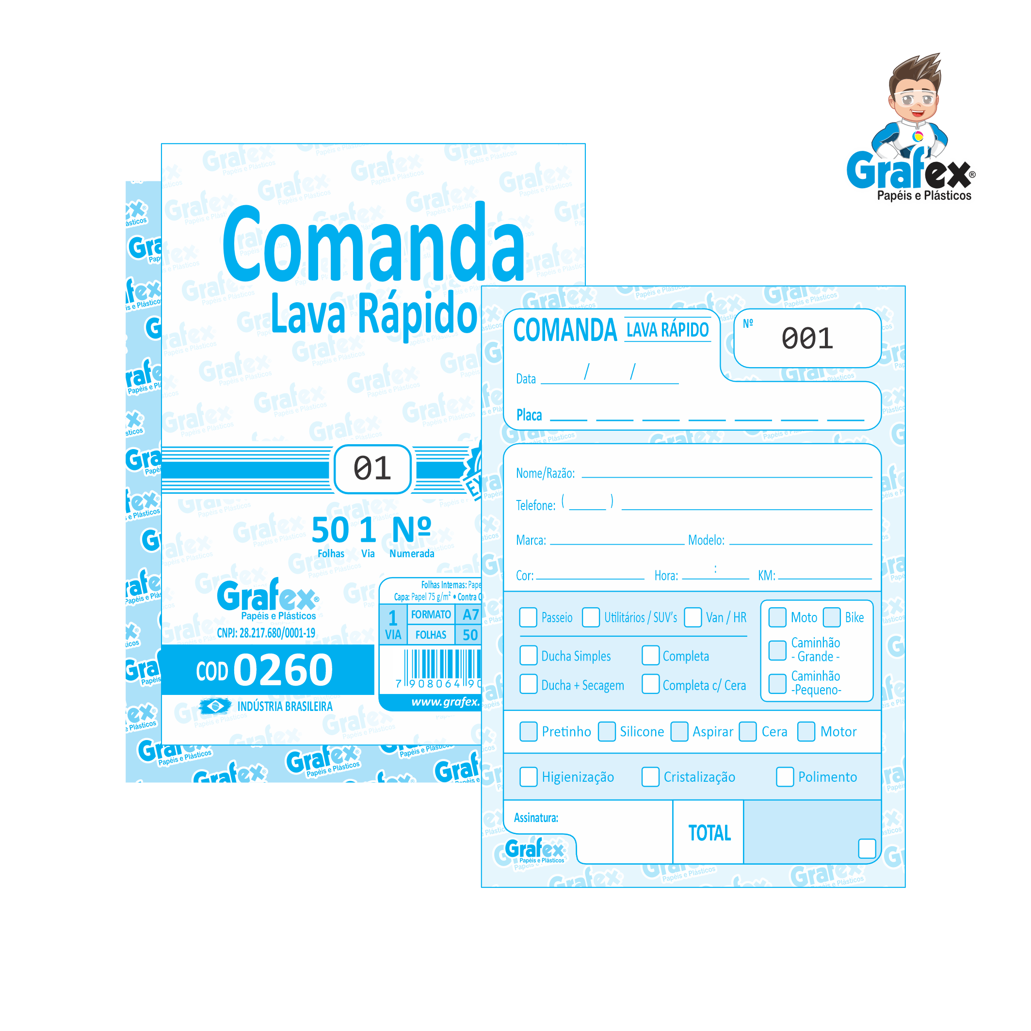 Grafex Cod 0260 Comanda Lava Rápido c/50 Folhas 1/72 - c/10 Blocos
