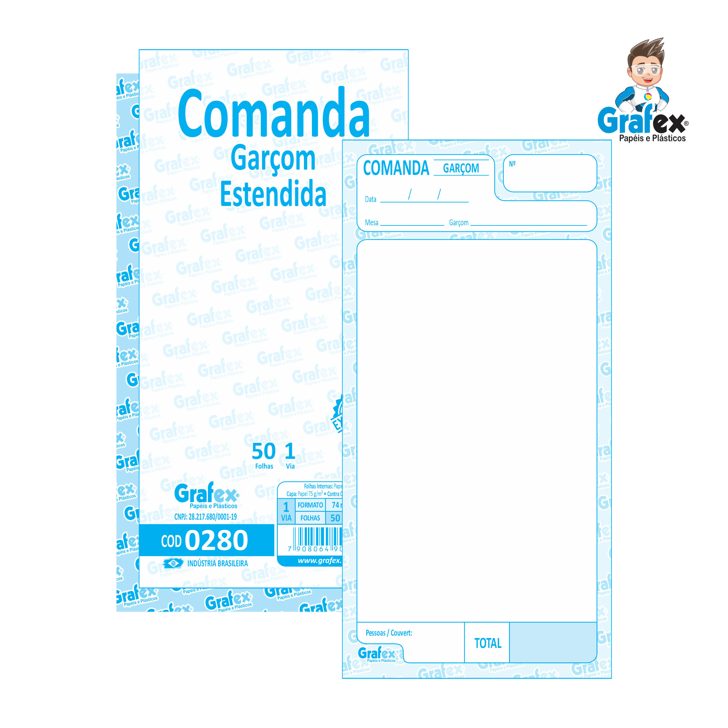 Grafex Cod 0280 Comanda Garçom Estendida c/50 Folhas 1/48 - c/10 Blocos